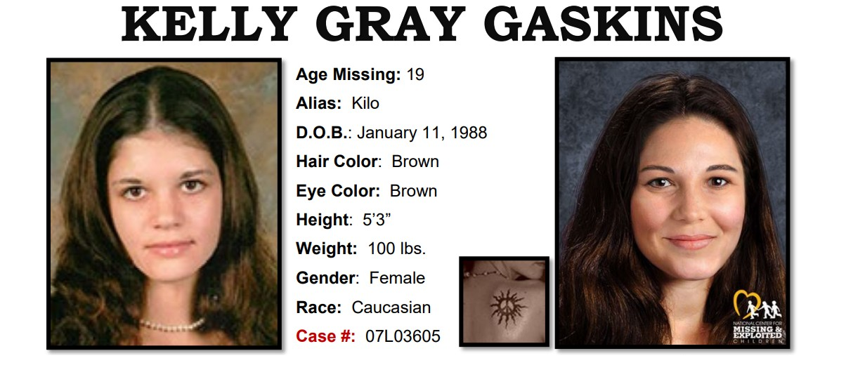 Kelly Gray “Kilo” Gaskins was 19 years old when she vanished on March 10, 2007. She was last known to be in the Brownsville, Texas / Matamoros, Mexico area during a spring break trip that took a sudden and confusing turn.